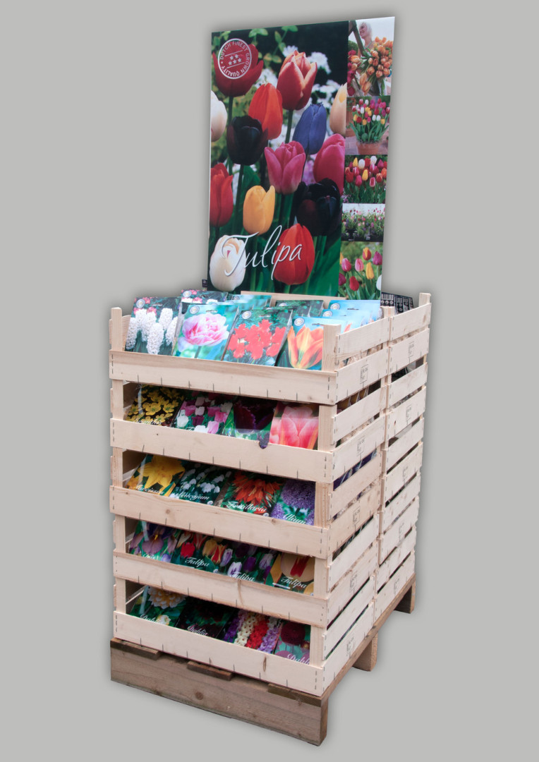 Wooden crates (60 x 40 x 22 cm) .