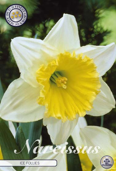 | Extra omschrijving | Introducing Narcissus Large Cupped 'Ice Follies,' a dazzling addition to your garden. Its white petals with yellow centers create a radiant display of beauty. Plant between April and May for blooms from September to January. Each package includes 5 premium bulbs, sized 14/16 cm. Thriving in half sun to half shade, 'Ice Follies' reaches heights of 50 cm with a planting depth of 7.5 cm. Elevate your garden with the enchanting allure of 'Ice Follies' as it blooms with grace and elegance, enriching your outdoor space with its captivating presence. |