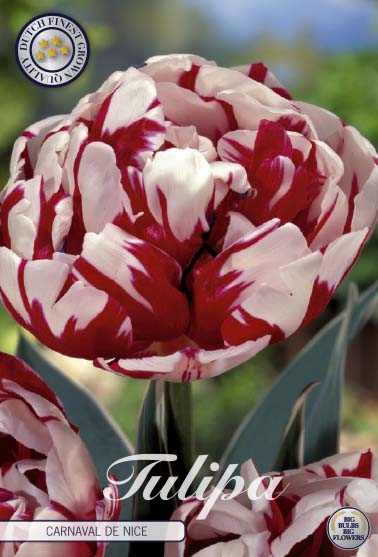 | Extra omschrijving | Introducing Double Late Tulip 'Carnaval de Nice', a breathtaking addition to late spring gardens with its stunning colors and captivating fragrance. This tulip variety offers a mesmerizing display, starting with variegated leaves edged in white, providing a high-contrast backdrop for its large peony-style flowers. The double layer of white petals resembles a bowl of creamy vanilla ice cream, adorned with vibrant streaks of bright raspberry red syrup cascading over the icy white petals. This striking combination creates a delightful and summery image, making 'Carnaval de Nice' a standout in any garden. Beyond its visual appeal, 'Carnaval de Nice' also adds fragrance to your garden, enhancing the sensory experience and creating a memorable atmosphere. Each package contains 7 premium bulbs, each boasting a substantial size of 12/+ cm. With a height ranging from 40 to 50 cm, 'Carnaval de Nice' Tulips make a stunning statement in your garden, bringing a touch of elegance and charm to your outdoor sanctuary. Experience the beauty and fragrance of 'Carnaval de Nice' Double Late Tulips in your garden. Order now to secure your bulbs and prepare for a breathtaking display of springtime beauty. |