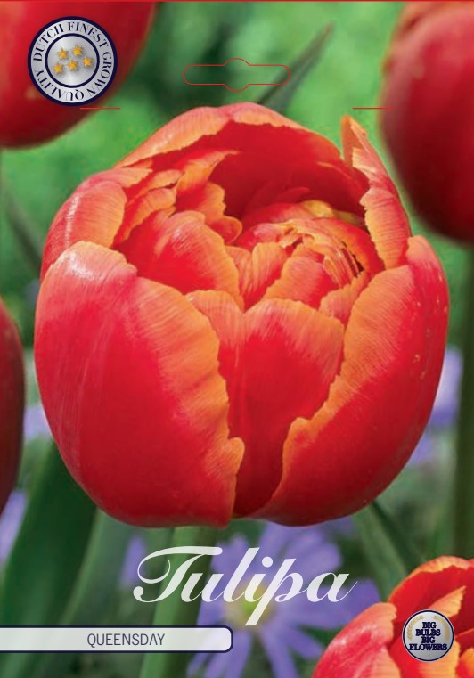 | Extra omschrijving | Introducing The Queensday Double Late Tulips feature striking orange-gold flowers with streaks of raspberry-pink. These bulbs, sized 12/+ cm, are suitable for planting in the fall from April to June, with blossoms anticipated from September to January. With a height range of 40-50 cm, they thrive in locations with half sun and half shade. Each package contains 7 bulbs, to be planted at a depth of 10 cm. |