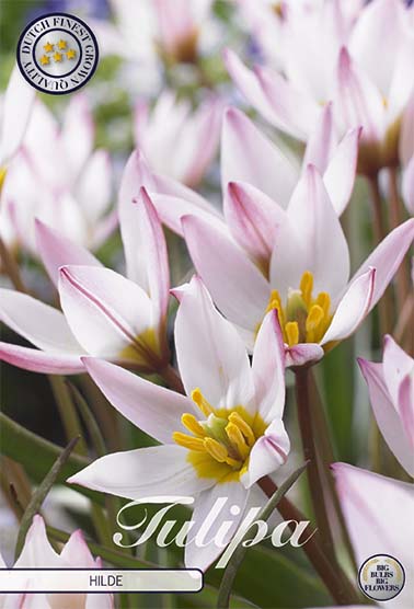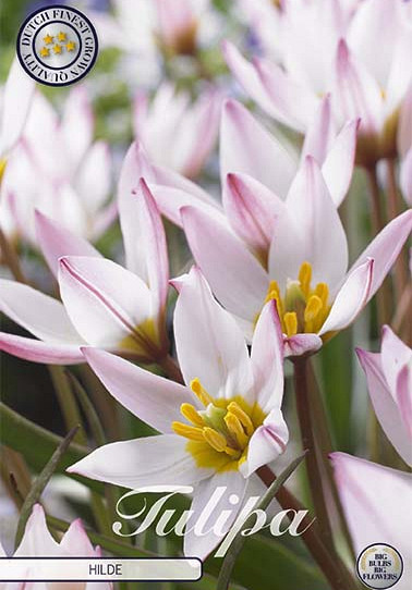 | Extra omschrijving | Introducing Hilde Botanical Tulips - Experience the charm of Tulip 'Hilde', also known as the Cretan tulip. Despite its delicate appearance, 'Hilde' thrives in harsh winter conditions. Each stem produces star-shaped flowers initially white, then revealing a blush-pink interior with a deep cadmium yellow throat, and soft pink petals with darker purple-pink markings. Plant 'Hilde' tulips in autumn in partial sun to partial shade areas. They reach 10-20 cm in height, with a planting depth of 5 cm and spacing of approximately 10 bulbs per area. With its delicate yet resilient nature and stunning floral display, Tulip 'Hilde' adds grace and beauty to any garden. Each package contains 10 bulbs. Don't miss the chance to experience the allure of Tulip 'Hilde' this season! |